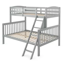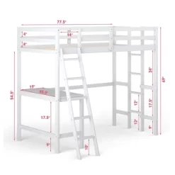 Costway Twin Loft Bed Frame W/Desk Angled And Built-in Ladder Solid Wooden Frame WhiteGreyExpresso