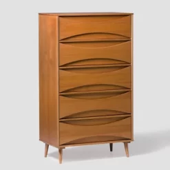 Mid-Century Modern Contoured 5 Drawer Chest Of Drawers – Saracina Home