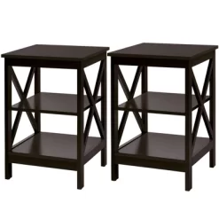 Costway 2 PCS 3-Tier Nightstand End Table X Design Storage Display Shelf Living Room