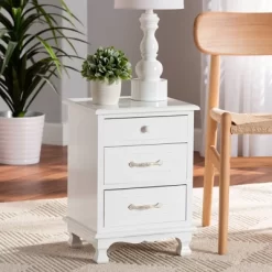 Marcin Wood And Metal 1 Drawer Nightstand White/Gold – Baxton Studio