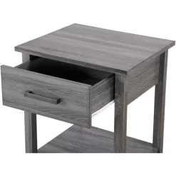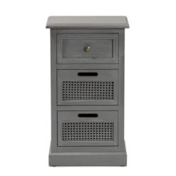 Sheldon Vintage Wood And Synthetic Rattan 3 Drawer Nightstand Gray – Baxton Studio