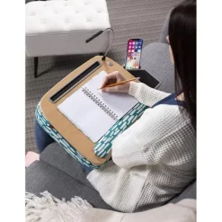 Sofia + Sam Multi-tasking Memory Foam Lap Desk With Teal Strokes Pattern