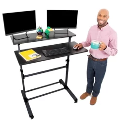 Techni Mobili Home Office Writing Desk With Riser Gold- Techni Mobili