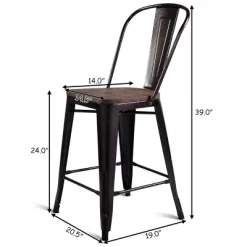 Costway Copper Set Of 4 Metal Wood Counter Stool Kitchen Dining Bar Chairs Rustic Full Back