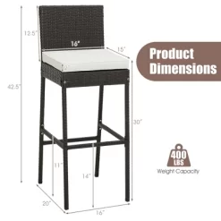 Costway Patio Wicker Barstools Bar Height Chairs W/ Cushions Backyard Off White