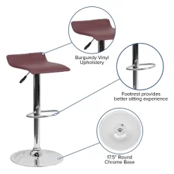 Emma And Oliver Solid Wave Seat Vinyl Adjustable Height Barstool With Chrome Base