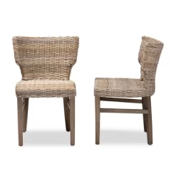2pc Enver Rattan And Wood Dining Chair Set Natural/Brown – Bali & Pari