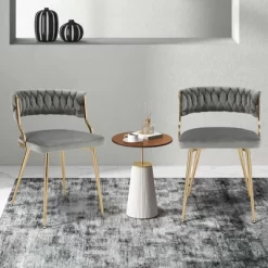 Costway Velvet Dining Chair Set Of 2 Upholstered Modern Accent Chair With Woven Back Grey/White