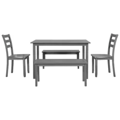 Hayden 4pc Extendable Dining Set With Bench And 2 Slat Back Chairs Slate – Crosley