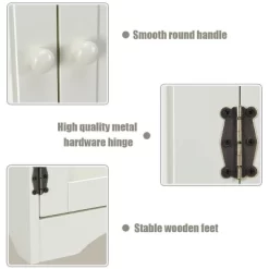 Costway Accent Storage Cabinet Adjustable Shelves Antique 2 Door Floor Cabinet White