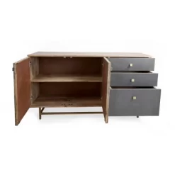 Patchwork 2 Door 3 Drawer Credenza Natural With Gray Accents – Treasure Trove Accents