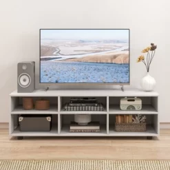Emma And Oliver Modern Rustic Farmhouse Media Console Cabinet With Spacious Open And Closed Storage