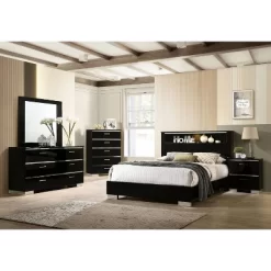 3pc Shorehaven Contemporary Nightstand And Chest California King Bedroom Set Black/Chrome – MiBasics