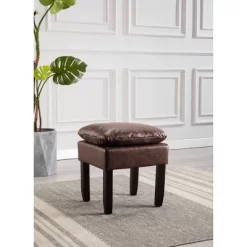 Enjoy adding this sensible, smart, and functional 18″ square pillowtop ottoman to your home. Offered in a range of practically designed and easy to maintain fabrics and colors, this square ottoman with wood legs will be an easy addition to your existing decorating style. The square shape and comfortable pillowtop seat allow this piece to stand on its own or work as a set of two to meet your design and seating needs. Use this for extra guests when entertaining, under a vanity when preparing for your day, or in your entryway or mudroom as a seating space to remove shoes.