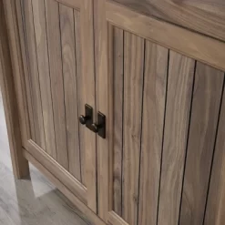 - Frame and panel doors feature elegant slat-front detailing.
