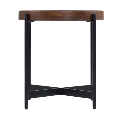 The simplistic design is both chic and functional. The mix of materials give this collection a rustic industrial feel that is sure bring character to your living space. Features solid wood tray tops that are fixed in place on a metal base. The end table will look perfect next to your favorite chair or sofa and is the ideal spot for a lamp, home decor, or fresh flowers.