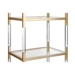 - Small, vertical aluminum wall shelf with bronze-finish bars