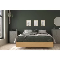 2pc Bilou Bedroom Set Natural Maple/Greige – Nexera