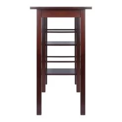 Make the Winsome Emmett 2Pc Desk Set the center of a handsome and comfortable home office or workspace. With its clean, simple lines and sleek silver drawer pulls, the desk will complement any dĂ©cor, from transitional to contemporary. Use the ample space provided by two drawers for smaller office items like pens and business cards, and keep notepads, personal electronic devices and charging cords in the side cabinet. The 44″” wide desktop is well-sized for a large computer monitor, speakers, and a table lamp, while the 17.7″” depth makes the piece a viable work station for smaller rooms and apartments. The set comes with the matching Emmett Bench that has a lift-up seat, opening to 24.8″”W x 8.4″”D for additional storage of files or office accessories. The bench slips perfectly into the desk opening when not in use. Sturdy squared-off legs on both the desk and bench provide plenty of support and durability. Constructed from solid and composite wood in a warm Walnut finish. Shipped in two boxes with hardware needed for assembly.