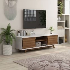 Pentictin 6 Shelf TV Stand For TVs Up To 70″ White – MiBasics