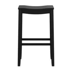 Coastal charm with a farmhouse flair embodies the Fiddler stool. Our versatile backless bar height saddle stool has a wide wood ship lap saddle seat, perfectly curved for added comfort and easily fits under kitchen islands or bar height spaces. The neutral black finish creates a stylish focal point for your dining space and is an easy addition to any decor. Durable wood flared legs add extra support and are complimented by perfectly a placed footrest adding an extra layer of comfort while eating, entertaining or working. Assembly is required.