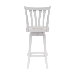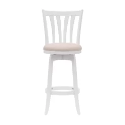 If familiar and inviting decor are hallmarks of your interior style, you need pieces that have a story. With this transitional-style Bar Stool, get the charm of vintage paired with new construction. Crafted with a clean-lined frame styled with a white finish that looks like naturally aged wood, and a neutral cream upholstery that offers texture and durability, this 360-degree swivel bar stool with its high, flared back will be the perfect spot to create memories and share traditions for years to come. Assembly required.