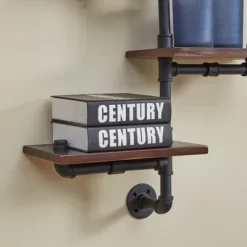 There’s no better way to add a little industrial flair to your living space than with the Danya B. 24″ 3-Tier Vertical Floating Staggered Industrial Rustic Pipe Shelving Unit. Elegantly crafted with the unique look of bare pipes finished in black, this fashionable wall accent piece comes with three stained wood shelves that can organize and display anything from books, vases, plants, or memorabilia. Display this chic wall shelf in urban abodes, contemporary spaces, industrial living rooms, or just anywhere where a bit of visual appeal is needed.