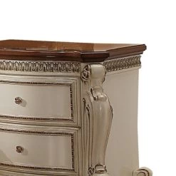 The Picardy Collection 31″ Nightstand brings the influence of European antiques to life with traditional carvings, detailed looping and a gorgeous antique pearl finish. It includes five drawers, two doors, metal hardware and raised scrolled trim. It is crafted of poplar and aspen wood construction for long lastng. We love that its streamlined design makes this piece blend with decor styles from minimal to contemporary.