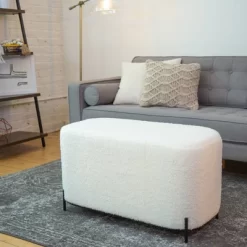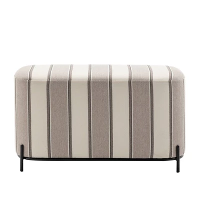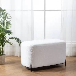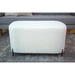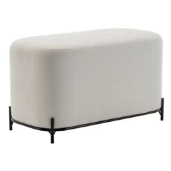 Lounge, prop, and entertain in style with this modern decorative ottoman atop a metal base. Offered in a range of classic fabrics with a soft finished hand and matte black metal base, this ottoman is built to be a lasting investment in your home. Designed with a 31.5″ length that is spacious enough for a couple of guests or your favorite tray and magazines, this could easily become the most editorial and hardworking item in your home. Add style and function in an entry way or mudroom, at the end of your bed, or in a living room to supplement your existing interior space. Filled with a foam core and measuring 31.5″ L x 18″H x 18″D, this ottoman is versatile, lightweight and compact, yet strong enough to hold up to 350 pounds. No assembly required, just pull out and start to enjoy.
