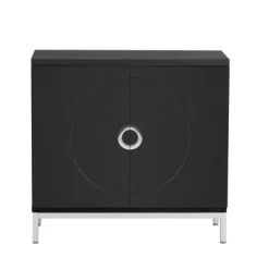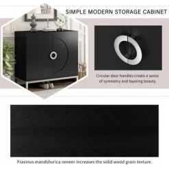 The cabinet body with wood grain finish and simple color tone combines beauty and practicality, with clean and neat lines, in line with the aesthetic standards of all ages. The surface fraxinus mandshurica veneer adds solid wood texture. Ample storage space is perfect for organizing. The round door and handle design create a sense of symmetry and layering, enhancing the overall sense of balance.