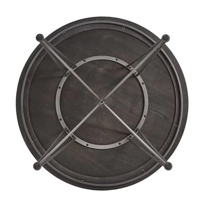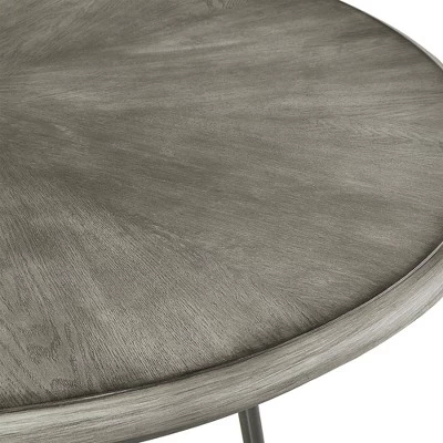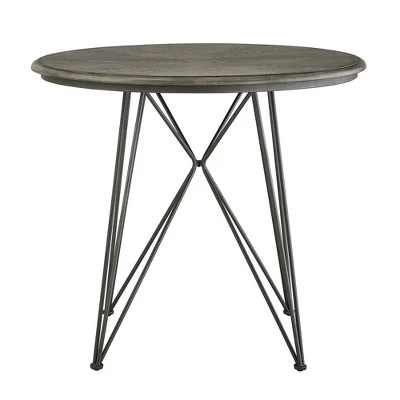 Modern and styled, the Nowell 42″W round iron table, establishes the ultimate industrial, rustic vibe for your casual dining space. Perfect for happy hours, the counter height table features a black powder coated metal frame that makes up the intricately woven, and the pedestal table base. The dense table top is constructed of a gray wood, giving off a weathered vibe that pairs well in neutral themed spaces. With the addition of foot rests, this durable table provides improved comfort for everyday use.