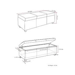 - 48 inch extra wide rectangular storage ottoman with lift open lid and large interior storage