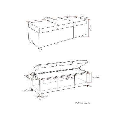 Clutter and mess everywhere. What you need is a tasteful, well made storage solution. The Franklin Large Rectangular Storage Ottoman Bench is made from durable Faux Leather and is the answer to all your needs. This attractive ottoman is extra strong and durable and features a beautiful stitched exterior and large storage interior. Whether you use this ottoman in your entryway, living room, family room, basement or bedroom, it will allow you to hide away all that mess. This ottoman is available in Brown, black, cream, Red and blue PU plus Brown and gray linen look fabrics.Efforts are made to reproduce accurate colors, variations in color may occur due to computer monitor and photography.