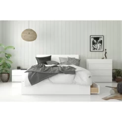 This 5-Drawer Chest has a timeless look and blends easily in any decor. The modern lines of this furniture are complemented with the cut-out handles of the 5 drawers on metal slides and adjustable levelers. You can pair 2 Nexera chests side by side to create a double dresser and add more storage for clothes and personal belongings in the room.