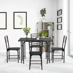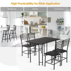 Our 5PCS Black Dining Set includes 1 table and 4 chairs, which is comfortable and attractive. Be made of steel frame and solid MDF panel, they are quite sturdy and durable. Chic design is perfect for your dining room or kitchen. And ergonomics and stylish design is as comfortable as it is beautiful. With them, you will enjoy your happy time. Do not hesitate to buy it!
