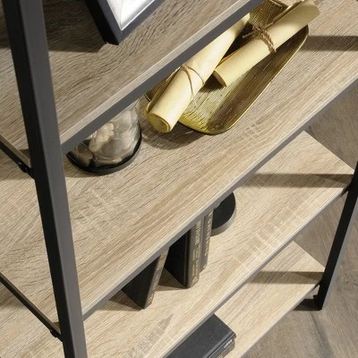 Stack it, store it, and display it on this 4-shelf bookcase from the North Avenue collection. It features four spacious open shelves so you can store and display books, bins, pictures, décor, and more! Constructed with a durable, black metal frame and finished on all sides in Charter Oak, this versatile library make will be the perfect finishing touch to any room.