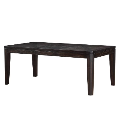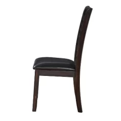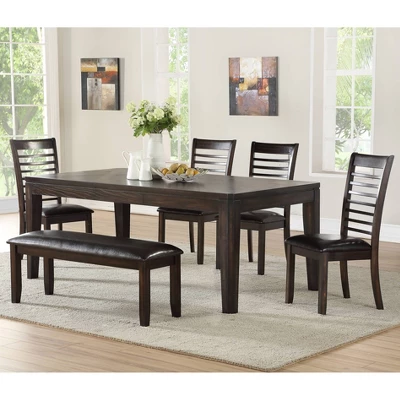 The comfortable, contemporary design of the Ally Dining Table welcomes everyone to your home. The table top features a beautiful fancy face veneer layup, a double-top design and an 18″ locking leaf when extra guests are coming. The top is supported by sturdy, chamfered legs all in an espresso finish. This chair features a contemporary ladderback design with a dark brown faux leather upholstered seat for added comfort and cleanability. Set includes dining table and 4 side chairs.