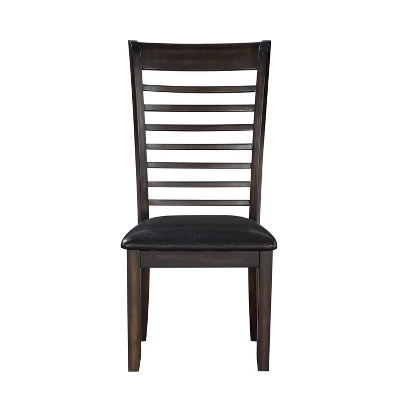 - Chair has contemporary ladderback design and faux leather upholstered seat for added comfort and cleanability