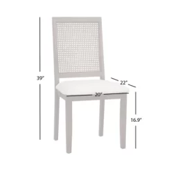 Timeless sophistication brings liveliness to your dining room with the 5Pc Westmont Rectangular Dining Set from Lifestorey. Simple lines allow this table to work great with many styles of interiors. Subtle taper solid rubberwood legs along with a tabletop constructed of MDF with beautiful wood veneers, highlight the rich wood grain in a rustic brown finish. Chairs feature textured cane high backs for added dimension and uniqueness. Cushioned upholstered chair seats in a crisp white soft velvet fabric are constructed with solid rubberwood in a rustic brown finish. This set is the perfect complement to any modern farmhouse or traditional style dining space. Set includes one table and four chairs.