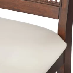 - Upholstered white velvet cushioned seats; table and chairs in a Rustic Brown finish