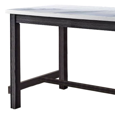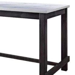Combination of white marble and dark wood brings you an eye catching appearance The Yelena counter height table showcases a marble table top, providing brilliant white surface. A wooden trestle bese surpoorts the table for a classic, minimalist look. You can enjoy a fresh breakfast on this spacious, clean top, while rest your legs on the crossbar support under the top. Matching chairs and bench with amply padded seats to maximize your space.