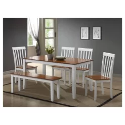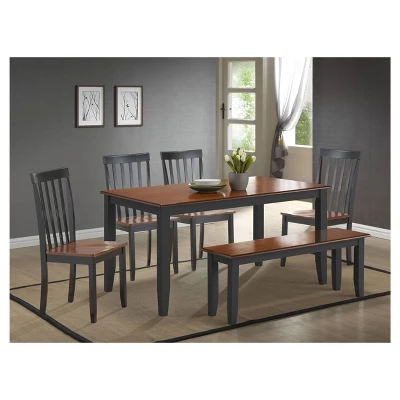 A reliable 6 piece dining set with a versatile appearance and rich color finish is exactly what you’ll find here. The Bloomington 6 piece set is the perfect size to gather loved ones around for all occasions. Engineered with solid hardwood and precision construction, equals a durable dining set that will surely stand the test of time. Additional stability is also provided through the shaker style legs of the table, chairs & bench. Its smooth lines and handsome appearance will undoubtedly boost the ambience of any dining area. Plus, its attractive two-toned color finish, makes it seamlessly transition with anyone’s interior decor taste. Interested in making a 5 or 7piece set? Simply remove or replace the Bloomington Bench with two more Bloomington Chairs creating a 5pc or 7pc dining set. Either way, you can’t go wrong. Stable with a classic look; this set is not a purchase, but an investment.