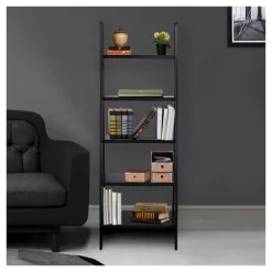 Gentle slants and right angles make this Ladder Style Bookshelf an exciting alternative to your traditional rectangular bookcase. The 5 shelves retract in length as the bookcase ascends to accent your decor placement naturally. Complete your layout with a progressive piece that has classic features. Product dim: 24.75″W x 16″D x 72″H. Light and easy assembly. Perfect for books, collectibles, and more.