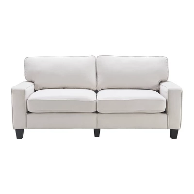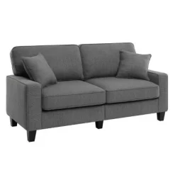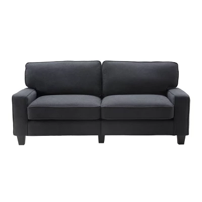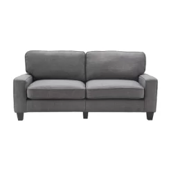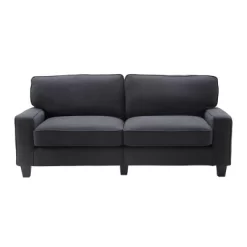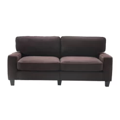 Add functional style and comfort to your living space with the Serta Palisades 78″ Sofa. Whether you’re looking to furnish a small space or add to your existing home decor, its compact size and tool-free assembly make it an optimal seating solution for your apartment, condo or office. Straight arms and square footers along with trendy fabrics and an espresso finish bring modern style at great value to your living room, den or home office. Quality hardwood materials, individually wrapped coils, and pillowed back cushions deliver durability you can count on and supportive seating you can relax into.