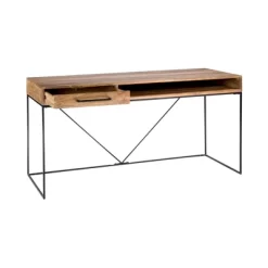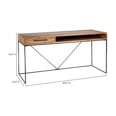 The Allensworth office desk embodies a sleek industrial design that’s perfect for every multitasker. Storage and organization are accessible with a single drawer and a large adjacent shelf. Made of solid mango wood and iron framing, this desk’s organic finish is warm and inviting, making your workdays feel less like workdays. This desk is destined for your thinking space, giving you a comfortable place to write, design, surf, and create, with a design that will blend subtly with your home office decor.