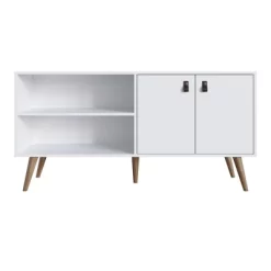 Amber Faux Leather Handles TV Stand For TVs Up To 50″ – Manhattan Comfort