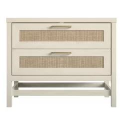 - Lightly textured, laminated faux rattan drawer fronts for easy cleaning