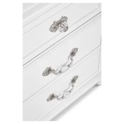 The Picket House Furnishings Annie 3-Drawer Nightstand is the perfect bedside addition to your bedroom! This nightstand comes with three, spacious drawers; perfect for keeping all of your bedside belongings within reach. The bottom drawer features a dust proofing bottom to help keep all of your belongings in great condition. The crystal-like drawer handles and knob add an extra layer of style to this already stunning piece. Bevel edges and a clean, crisp white finish complete the look of this transitional design.