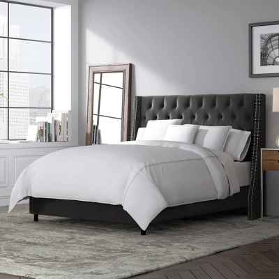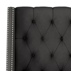 Arlette Nail Button Tufted Wingback Bed In Shiny Velvet – Skyline Furniture