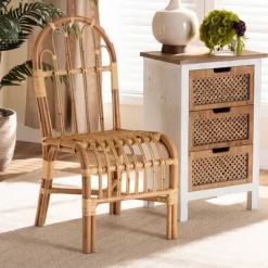 Transform the feel of any space with the laidback charm of the Athena chair. Handmade in Indonesia, the Athena is comprised of natural rattan. Its backrest features looped accents for an open, airy look that allows light to flow more freely throughout the room. Fully assembled, the curved backrest and seat create a smooth, modern outline. With excellent comfort and a tropical look, the Athena chair elevates the feel of any home lounge. Dimensions: 37.4″ High x 18.1″ Wide x 22.4″ Deep; Seat Dimensions: 21.7″ High x 17.9″ Wide x 17.9″ Deep; Back: 15.7″ High; Legs: 7.9″ High;